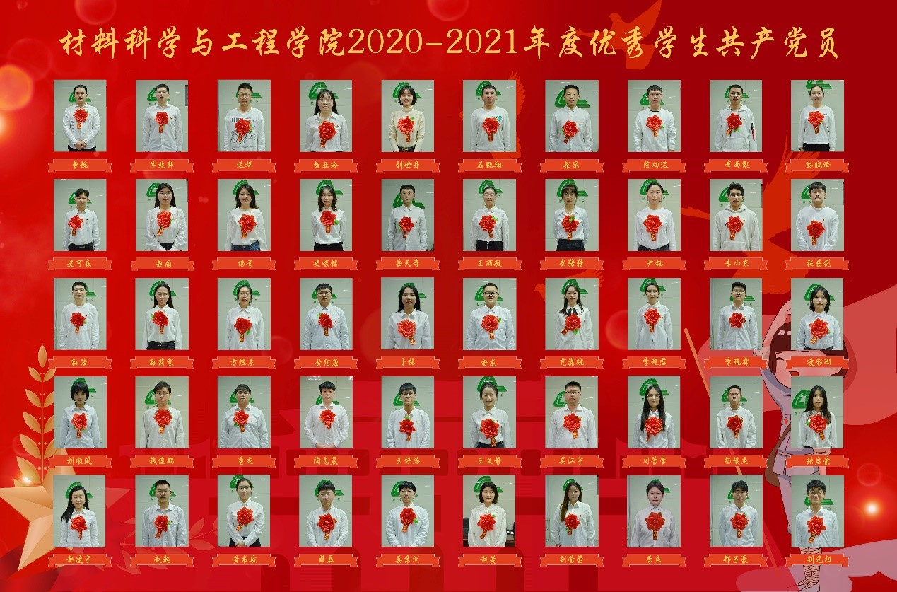 “请党放心,强国有我。”中国共产党建党100周年大会上少年们的誓言仍铿锵在耳,振奋激昂。为深入落实《关于贯彻落实<2019-2023年全国党员教育培训工作规划>的实施意见》,结合实际开展好大学生党员的党史学习教育,进一步推进我院“我为师生办实事”活动走向切实深入,材料科学与工程学院于2021年11月至12月,开展2021年学生党员的评优工作。这次评优,旨在树立学生党员先锋模范,凝聚榜样力量,激发全体学生学习新青年典型的热情,传播材料正能量。